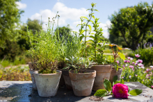 Kräutergärtnern im Sommer